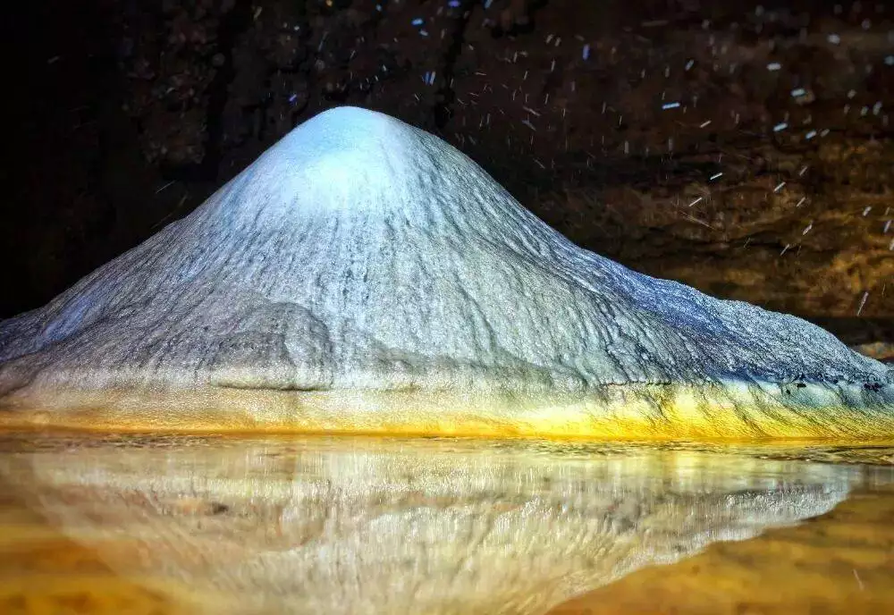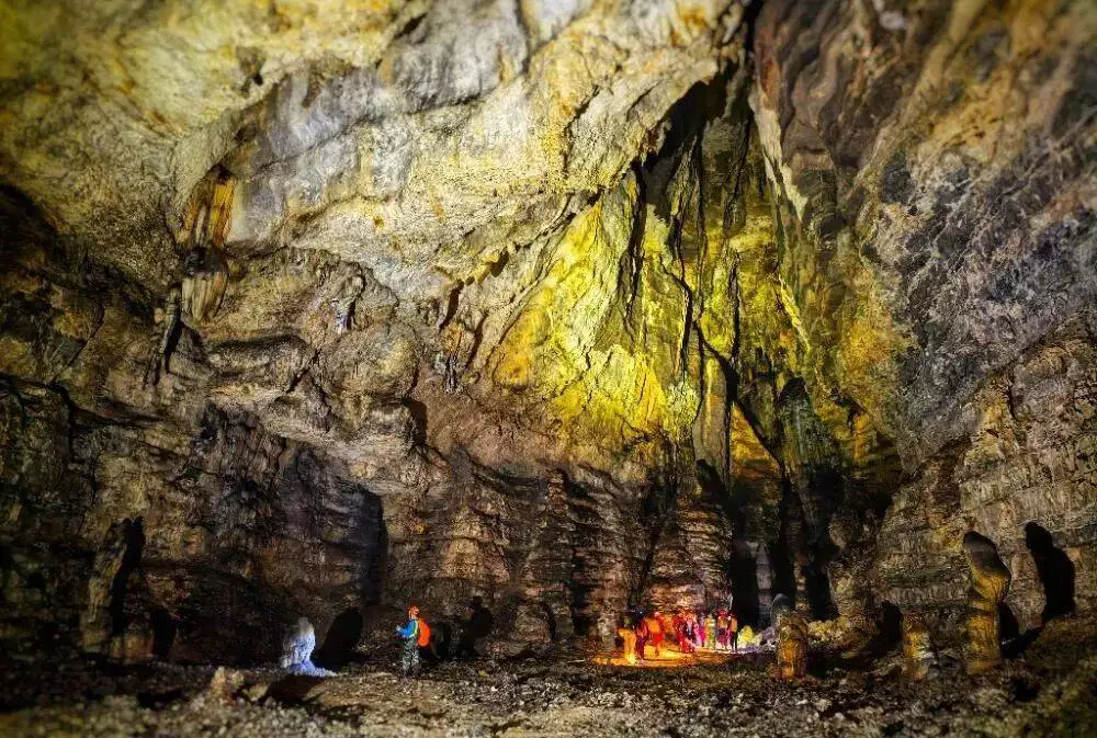 然而,受特殊地质构造影响,该洞穴的石膏形成机制与常规沉积型石膏差异显著,属于次生淋滤型石膏。石膏的主要成分是硫酸钙,此处因后期地壳抬升,在地表水渗漏作用下,硫酸钙从岩层层面再次渗漏出来并重新结晶,从而形成次生淋滤型石膏。