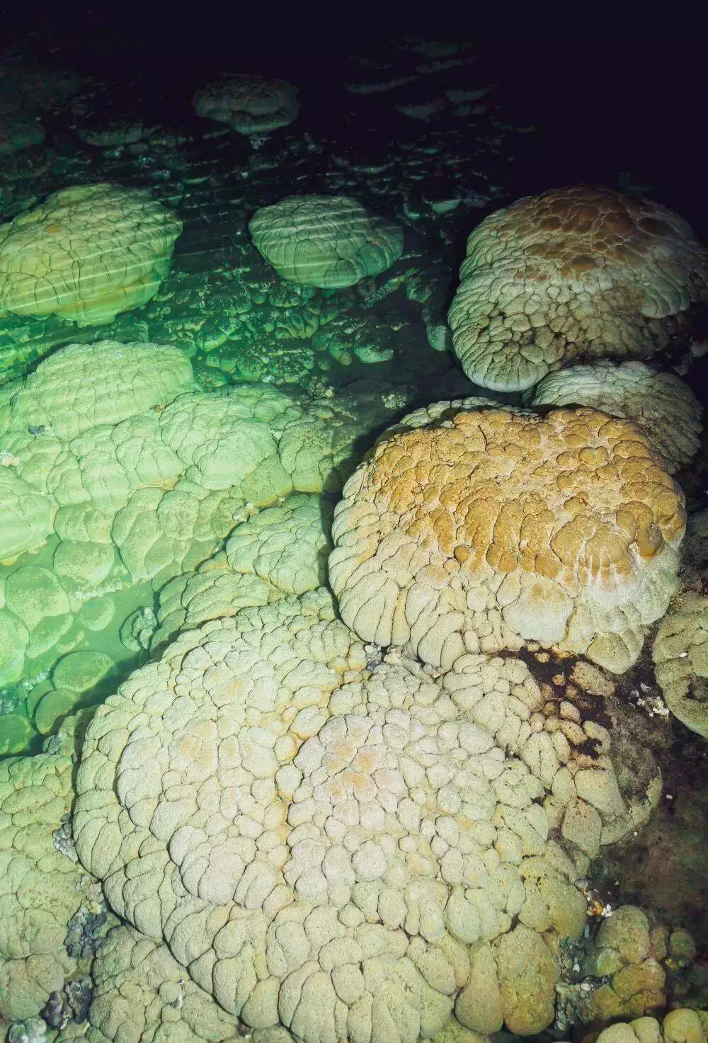 ▲洞里形态各异的石膏晶体群。