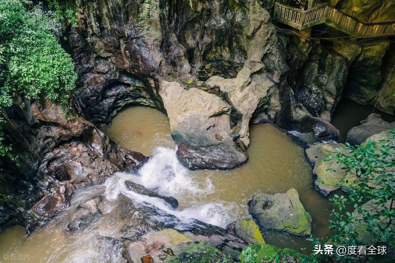 穿过惊魂峡,视野陡然开阔,雄狮大厅的恢弘瞬间撞入眼帘。这处被誉为“世界最大地下广场”的洞穴,长宽均超过两百米,面积达一万五千平方米,相当于两个标准足球场大小。大厅的穹顶由一整块玄武岩构成,天衣无缝,上面嵌着几个窝形漩涡,那是古老暗河在此盘旋冲刷留下的印记。南边洞口天生桥上,一尊钟乳石酷似昂首挺立的雄狮,雄狮大厅便因此得名。